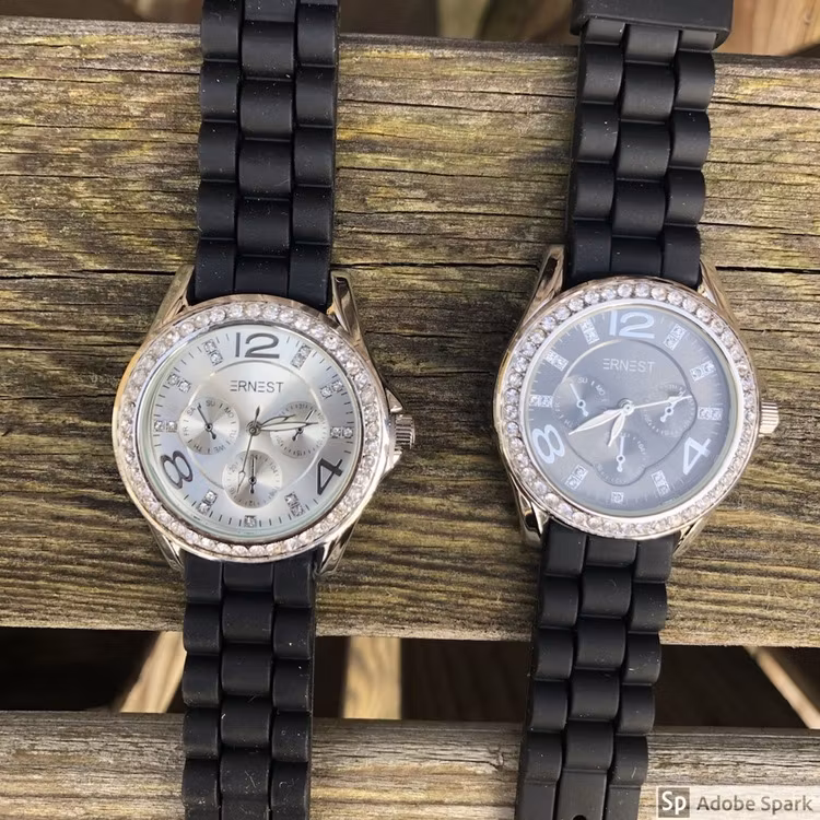 Svart klocka med blingbling och ljus urtavla Svart klocka med blingbling med ljusurtavlaDenna snygga klocka har en ljus urtavla med blingbling runt om och svart gummi rem.riktigt bra presenttips! 299 kr 239 kr Produkten är tyvärr slut i lager. :(